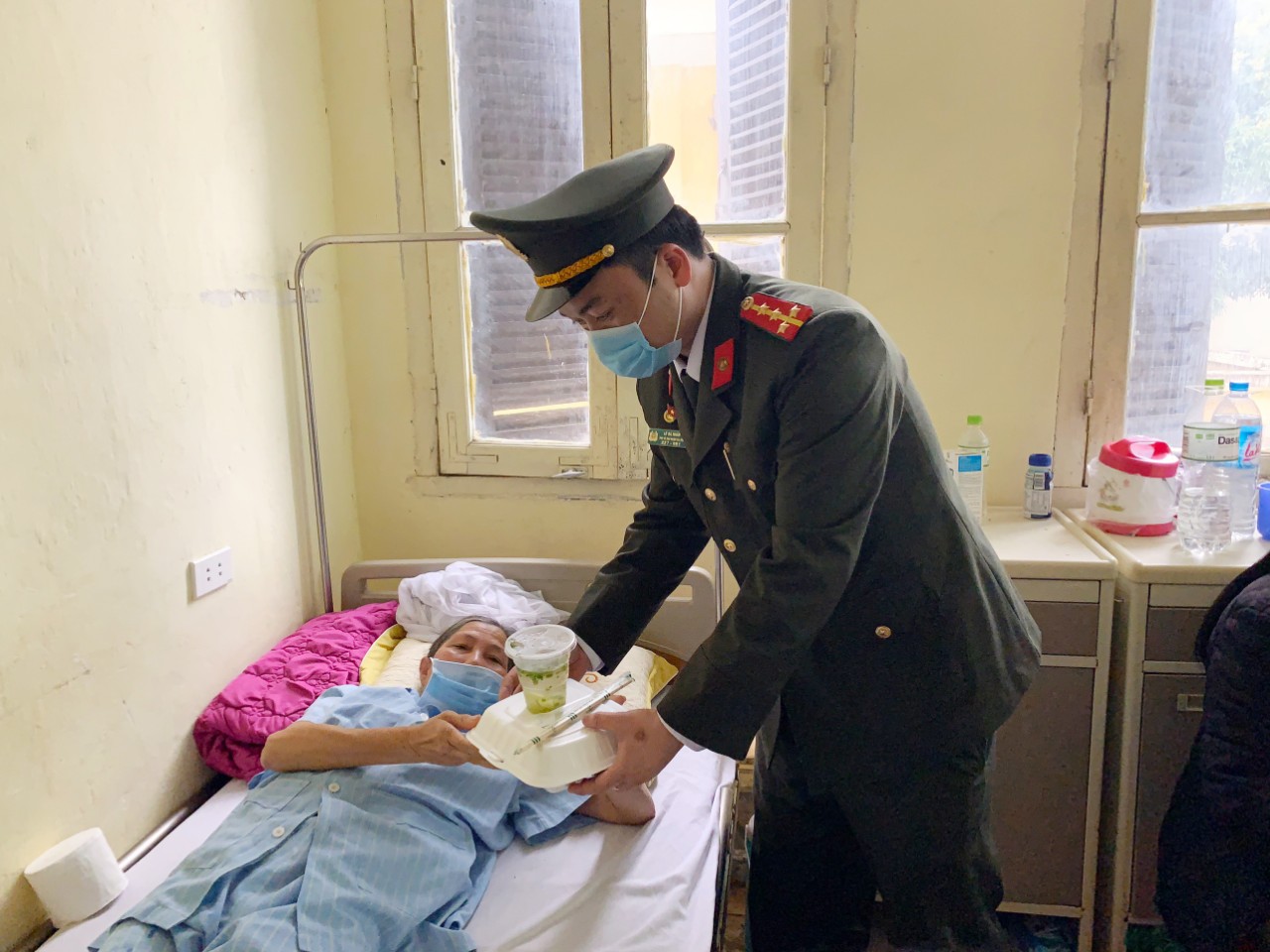 Hàng trăm suất cơm miễn phí được các chiến sĩ Cảnh sát cơ động – Công an Tỉnh Nghệ An phối hợp với chi đoàn thanh niên Bệnh viện phát tận tay làm ấm lòng các thân nhân và bệnh nhân nghèo đang điều trị tại Bệnh viện Chấn thương Chỉnh hình Nghệ An.