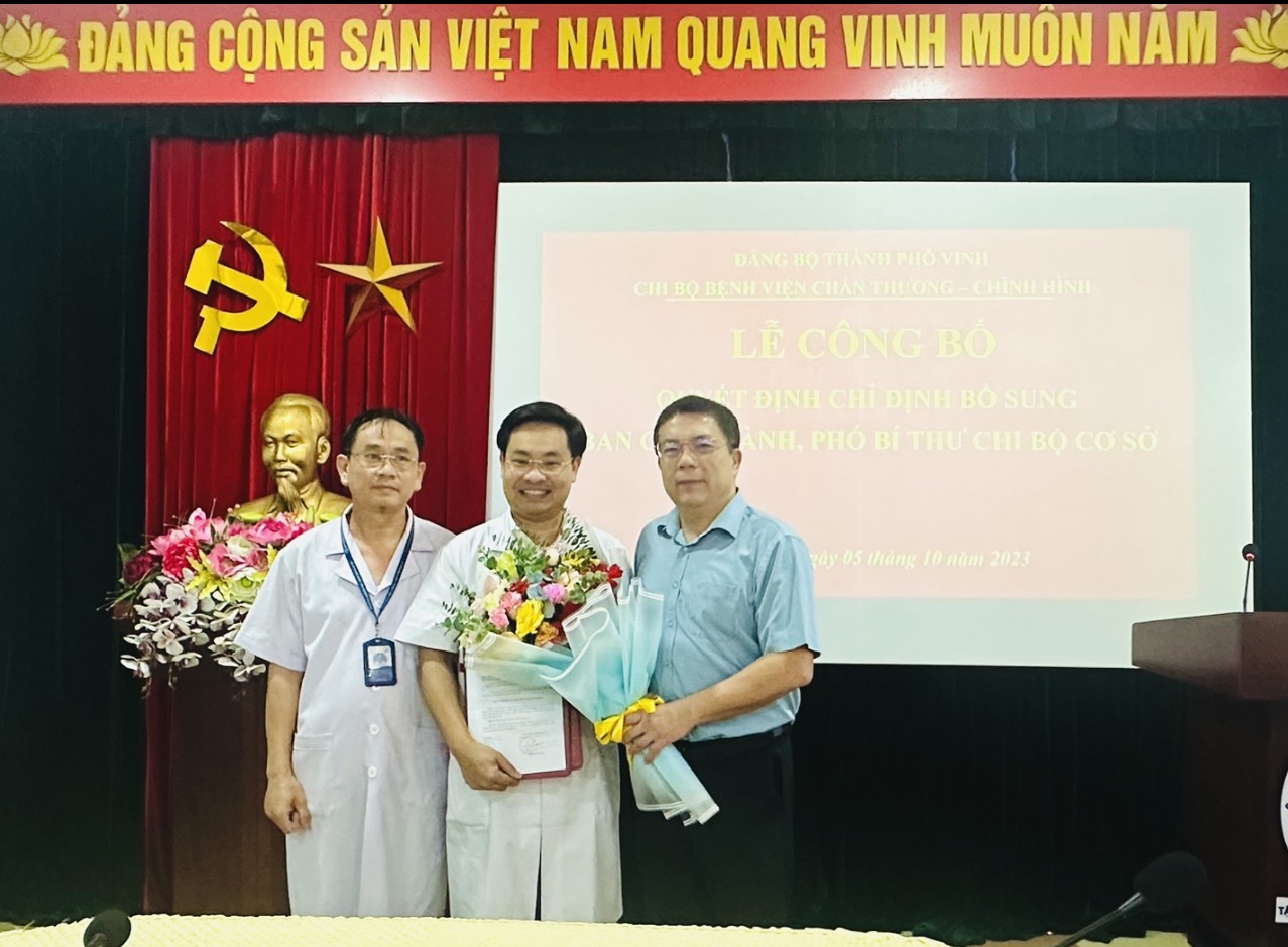 Theo đó, đồng chí Nguyễn Tất Ngọc - Phó Giám đốc Bệnh viện Chấn thương - Chỉnh hình Nghệ An được chỉ định bổ sung vào Ban chấp hành và giữ chức Ohos bí thư chi bộ Bệnh viện Chấn thương - Chỉnh hình Nghệ An, nhiệm kỳ 2020-2025.