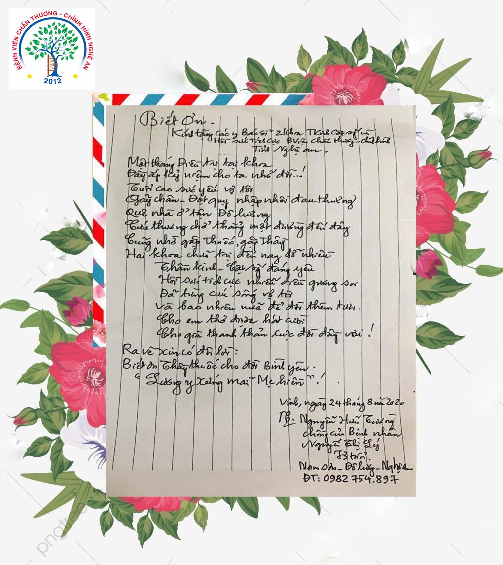 Cảm ơn Bác và gia đình đã tin tưởng và lựa chọn BVCTCHNA là nơi thăm khám và điều trị bệnh.
